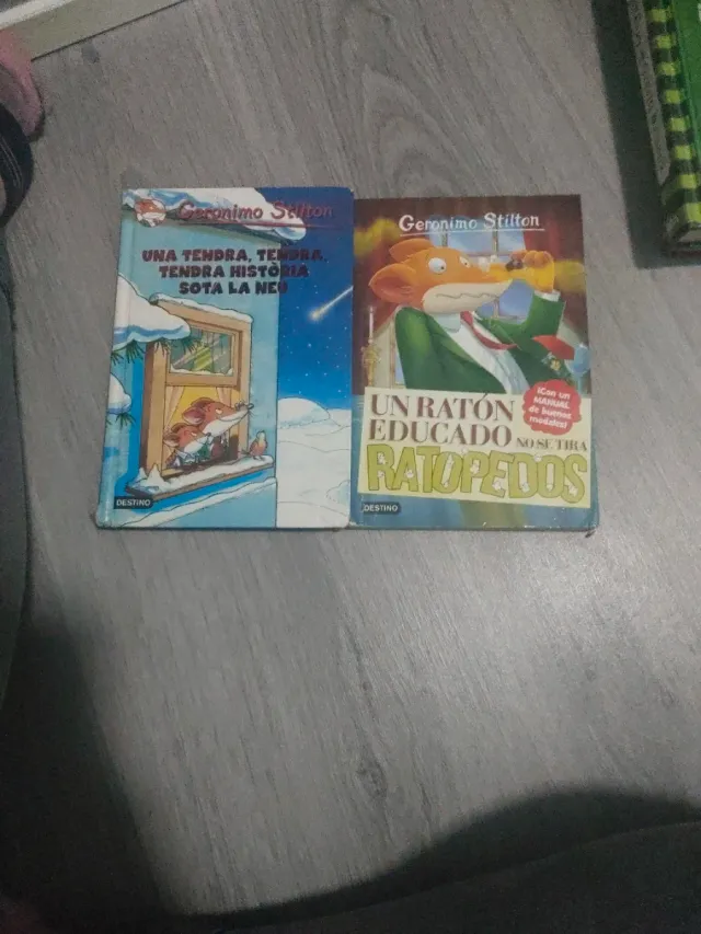 Lote de dos libros de Gerónimo Stilton. - Una tendra, tendra, tendra historia sota la neu - Un ratón educado no se tira ratopedos