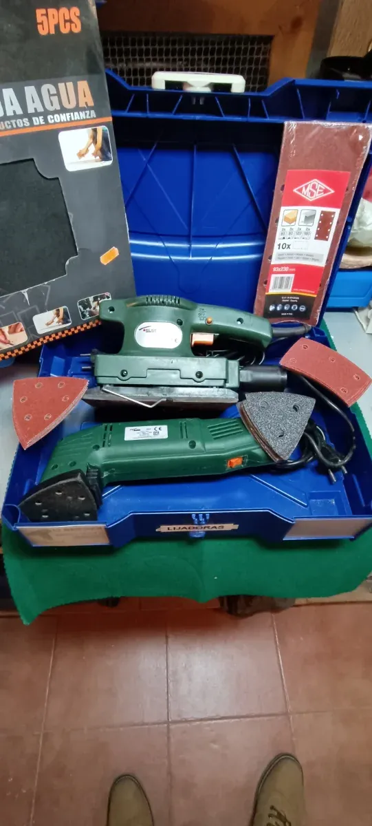 Detalles del productoSe venden dos lijadoras eléctricas junto con su caja de transporte.
