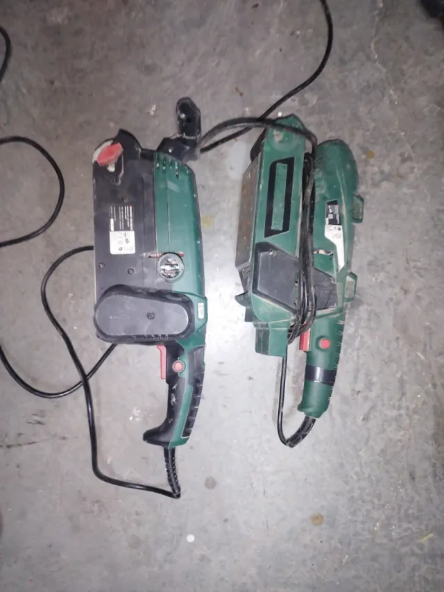 Se venden dos lijadoras de la marca Parkside para piezas. Ambas herramientas son eléctricas y de color verde con detalles en negro. - Lijadora de banda. - Lijadora orbital.