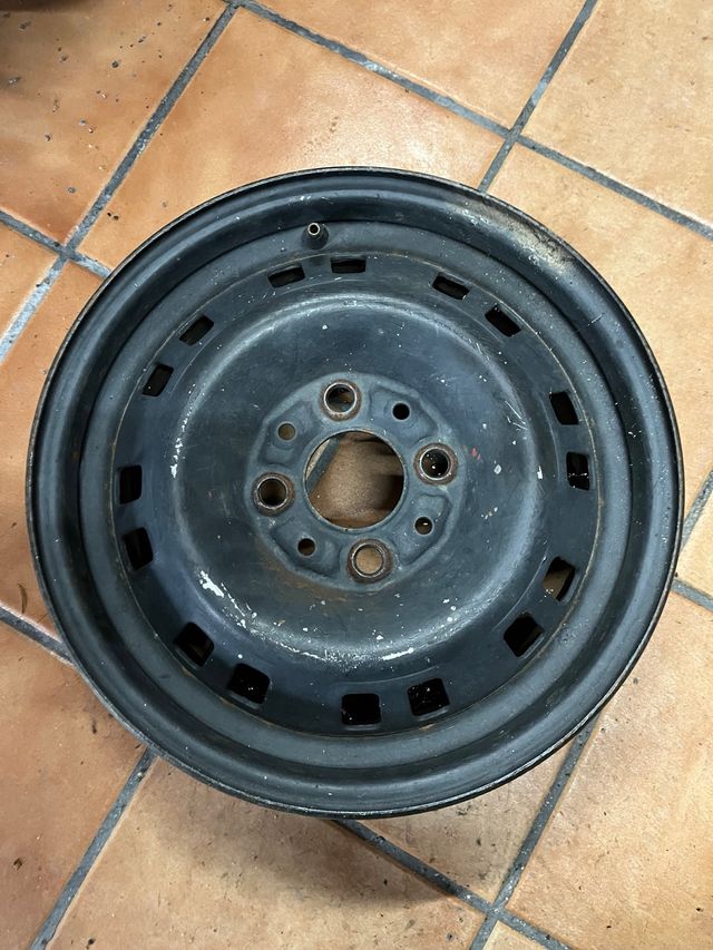 Llantas de chapa de 13 pulgadas con anclaje 4x98. - Diámetro: 13 pulgadas. - Patrón de pernos: 4x98. - Una lleva una goma Fedima con una raja para reparar #pandaraid