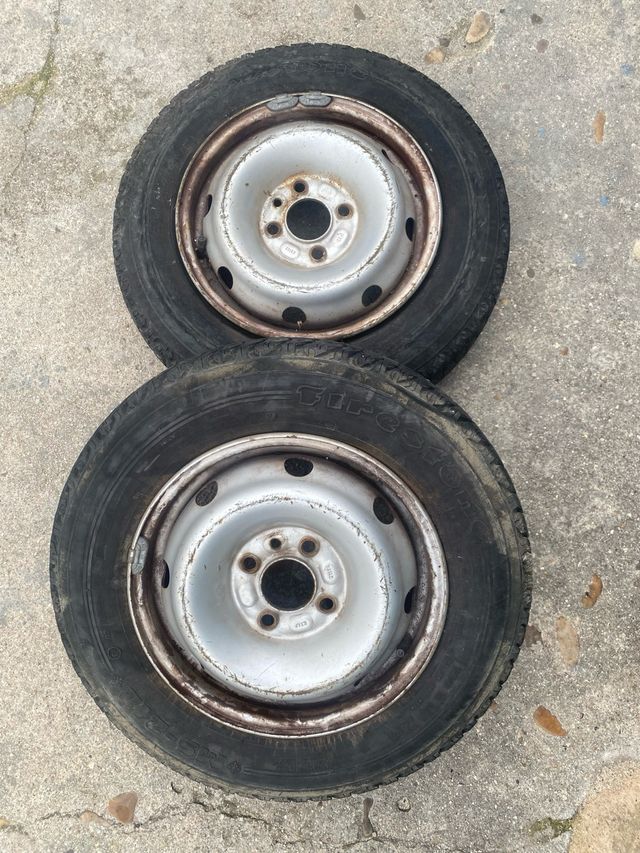 Se venden dos llantas de acero para coche. Son ideales para repuesto o para renovar tu vehículo. - Llantas de acero. - Diámetro de 15 pulgadas. - Incluye neumáticos.