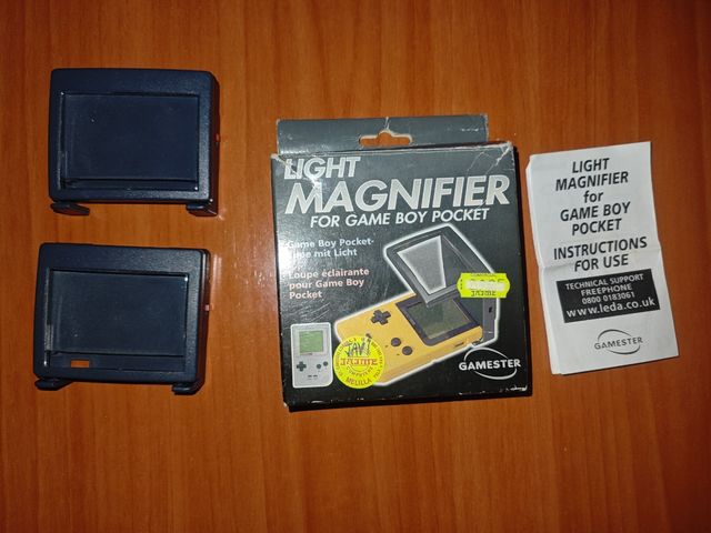 Detalles del productoMagnificador con luz para Game Boy Pocket de la marca GAMESTER. Incluye dos lentes. Están en buen estado.