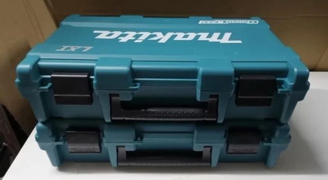 Con huecos para taladro y atornillador con sus baterias y cargador.