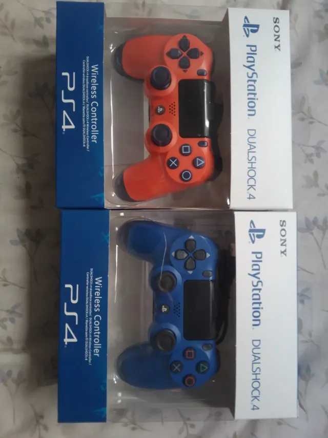 Pack de dos mandos inalámbricos Dualshock 4 para PlayStation 4. - Color naranja. - Color azul.