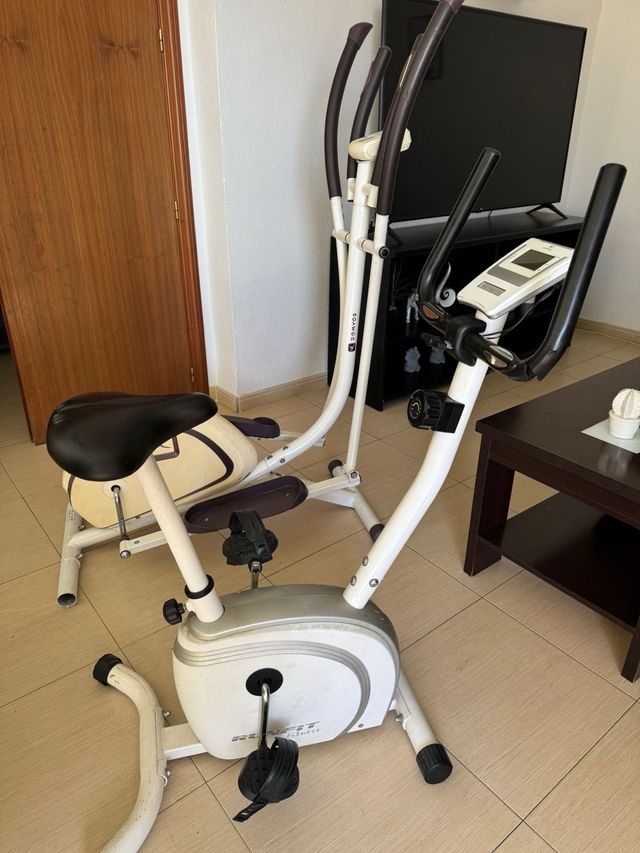 Se venden dos máquinas de ejercicio, una bicicleta estática y una elíptica. - Bicicleta estática con sillín. - Elíptica con manillar y pedales.