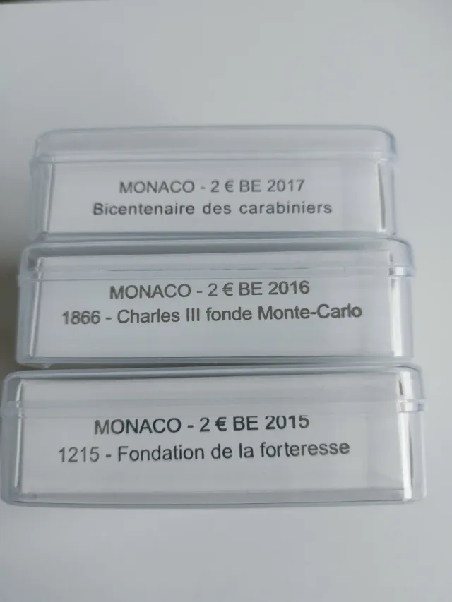 Detalles del productoLote de tres monedas de 2 euros de Mónaco. Encapsuladas en sus estuches y con sus certificados numerados. Posibilidad de recogida en Xinzo de Limia (Orense).