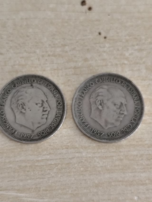 Detalles del productoSe venden dos monedas de 25 pesetas españolas de 1957. Son monedas antiguas con la efigie de Franco. - Buen estado de conservación, aunque presentan señales del paso del tiempo. - Ideales para coleccionistas. Medidas del producto