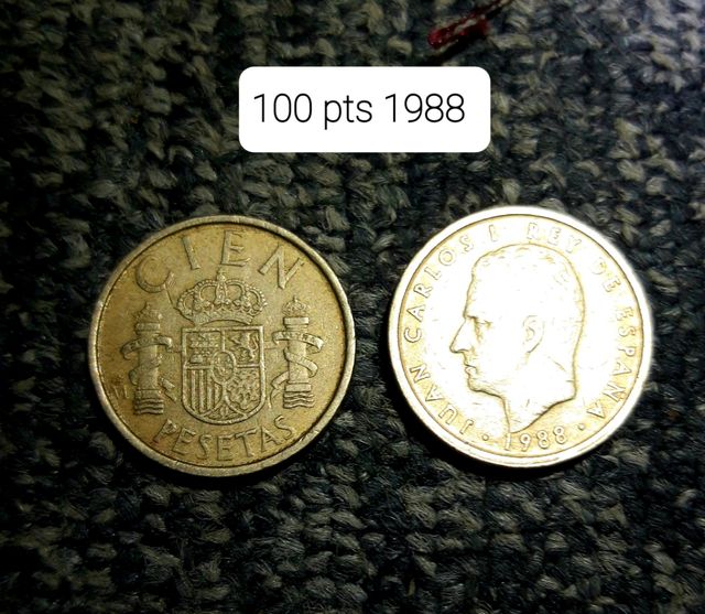 Detalles del productoDos monedas de 100 pesetas de España, acuñadas en el año 1988.