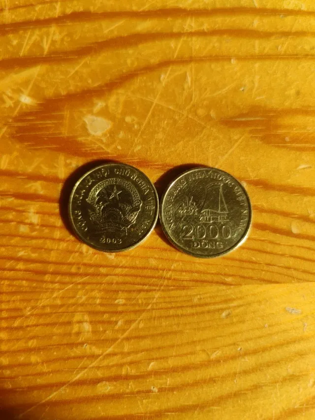 - 2 monedas con el año 2003 con un valor de 2000 DONG cada una.