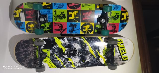 Detalles del productoSe venden dos monopatines, uno de la marca Tijuana y otro Oxelo, ambos con soportes para pared.