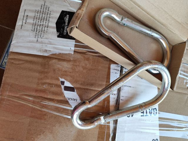 Detalles del productoSe venden dos mosquetones de acero galvanizado. Son resistentes y estan completamente nuevos nunca se han usado