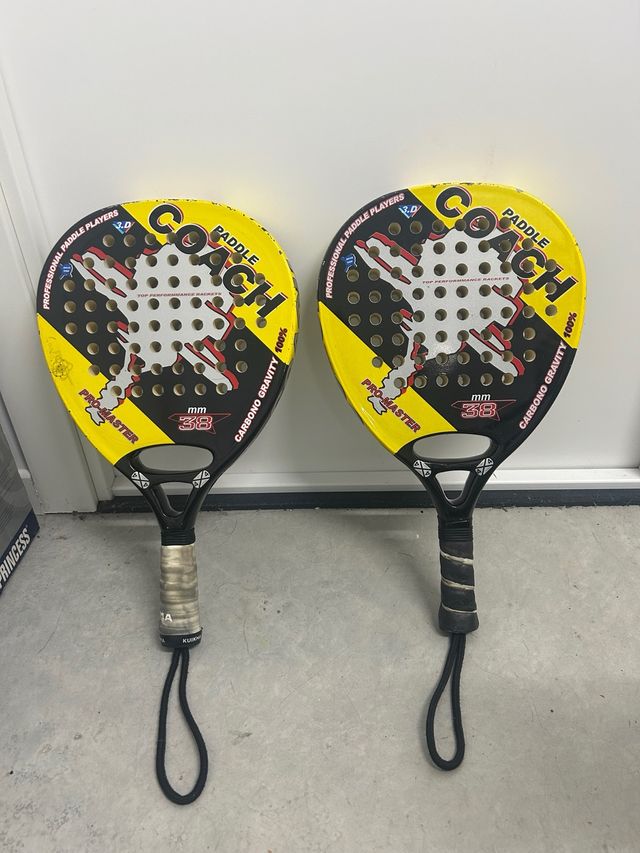 Detalles del productoSe venden dos palas de pádel Coach Pro-Master, diseñadas para jugadores profesionales.(dos unidades, 10€/unidad)