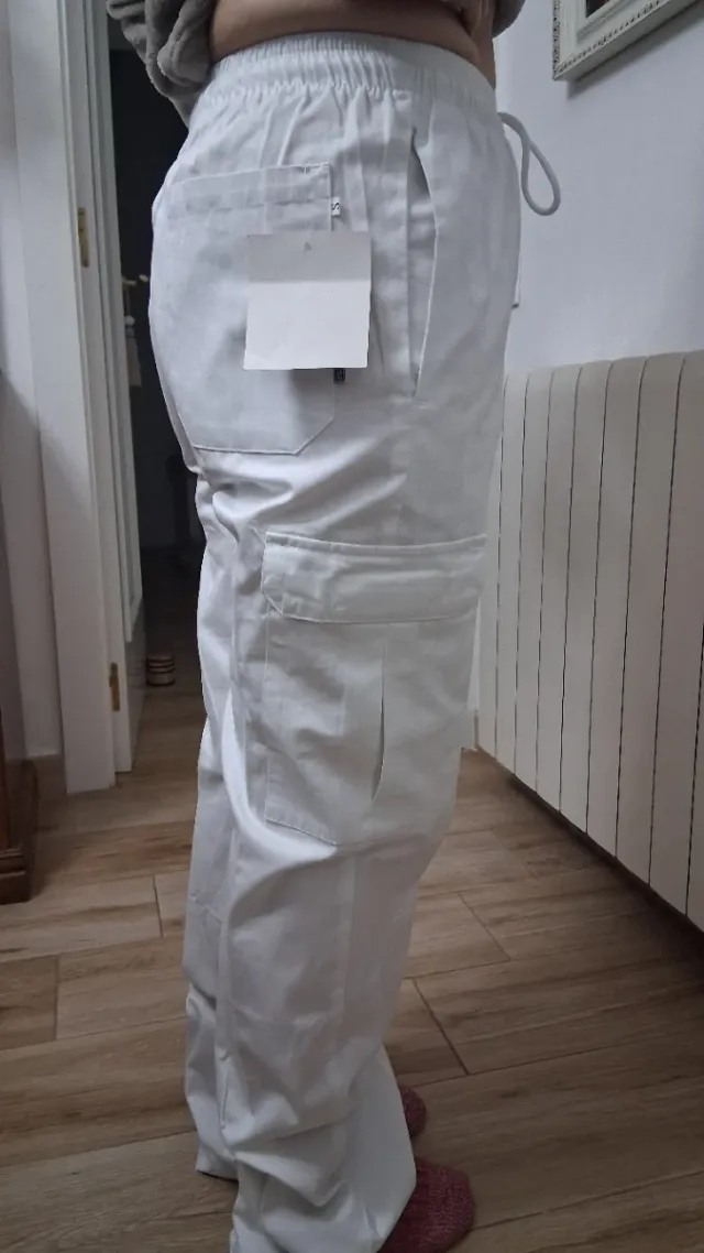 2 Pantalones Trabajo Blancos Algodón 5 Bolsillos
