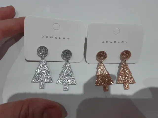 2 Pares Pendientes Árbol Navidad Dorado Plateado