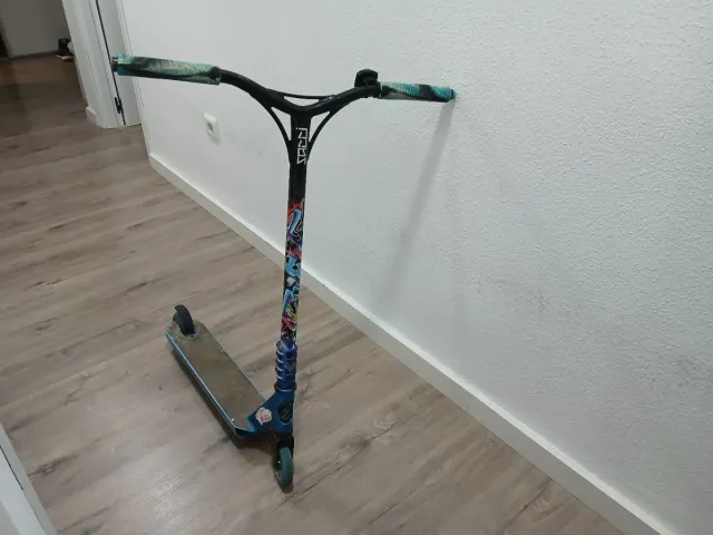 Se venden dos patinetes de freestyle. - Diseño con gráficos coloridos. - Manillar con puños de goma. - Plataforma para patinar.