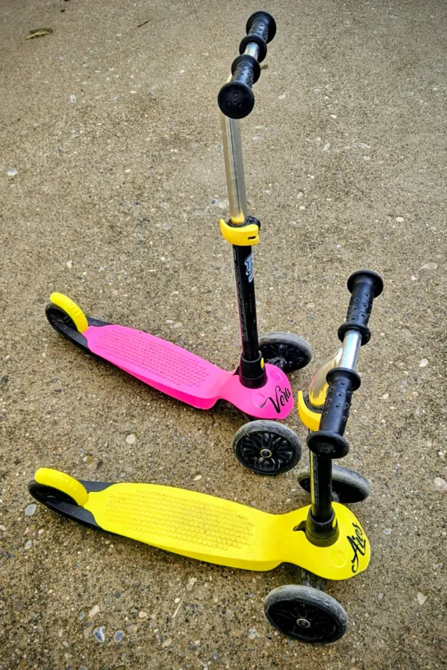 Detalles del productoDos patinetes infantiles de tres ruedas.