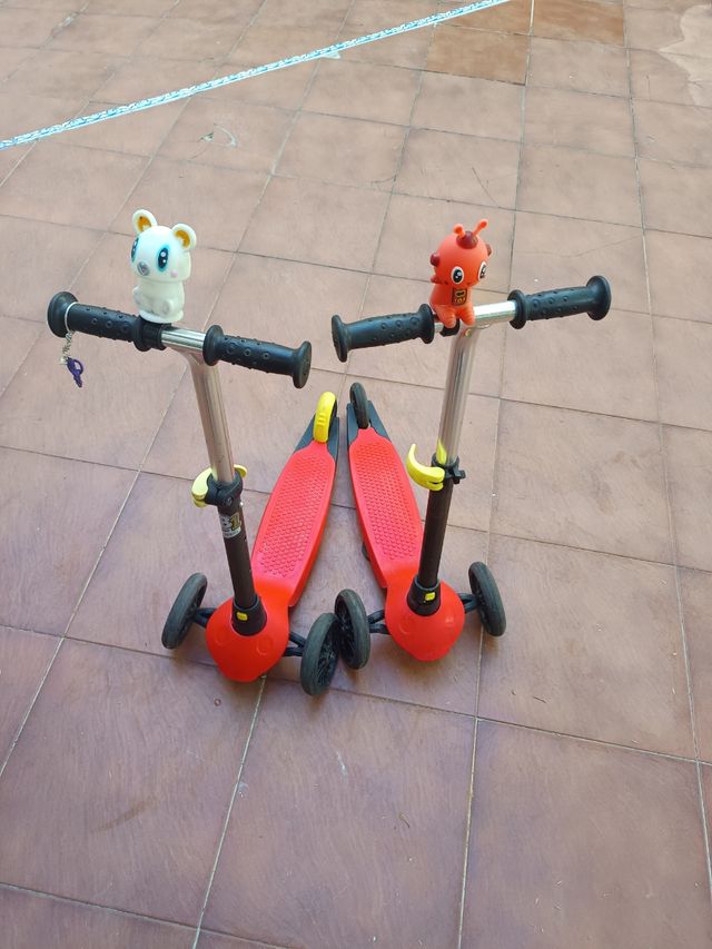 Detalles del productoSe venden dos patinetes infantiles de Decathlon, ideales para los más pequeños. Cada patinete tiene un diseño divertido con un personaje en el manillar ajustable, que es una bocina. Los vendo individuales también a 8 euros.