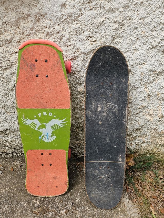 Detalles del productoSe venden dos patinetes/monopatines usados. Uno de ellos es de color verde con un águila y el otro es negro.