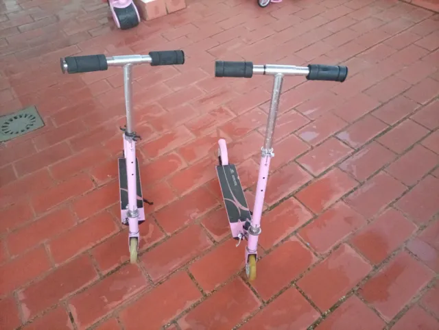 Detalles del productoSe venden dos patinetes scooter infantiles de color rosa. Ideales para paseos y diversión.