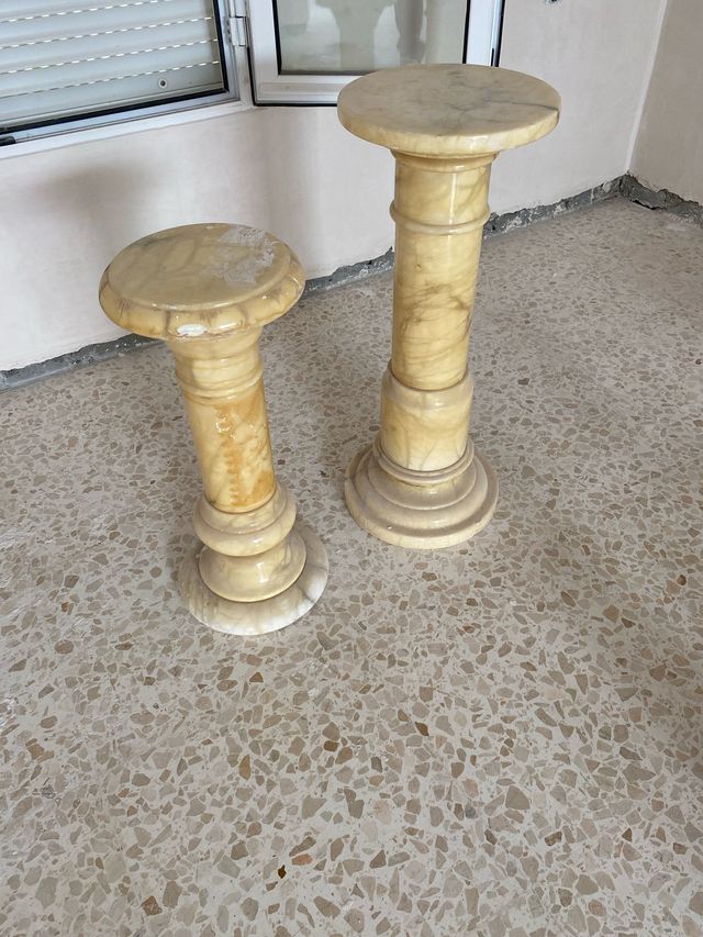Detalles del productoConjunto de dos pedestales de mármol con un diseño clásico y elegante. Perfectos para exhibir esculturas o plantas.