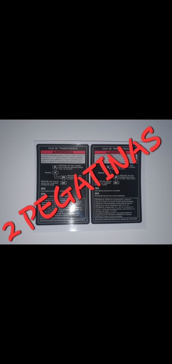 Detalles del productoDos pegatinas informativas para la caja de transferencia de un Suzuki Vitara.