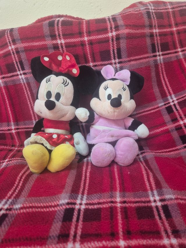 Detalles del productoPreciosos peluches de Minnie Mouse, ideales para regalar o coleccionar. Son dos muñecos, uno con vestido rojo y lunares blancos y otro con vestido morado. Están en buen estado y son muy suaves. - Son ideales para regalar o coleccionar.