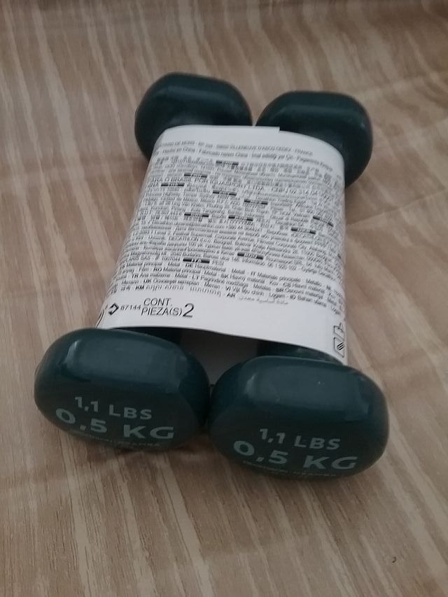 Par de pesas de 0.5 kg cada una. - Peso: 0.5 kg (1.1 LBS) por pesa. - Color: Verde oscuro.