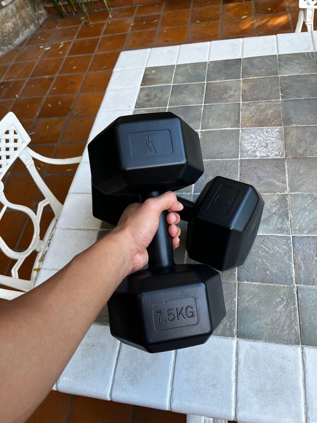 ✅ Juego compuesto por 2 mancuernas de 7,5kg.