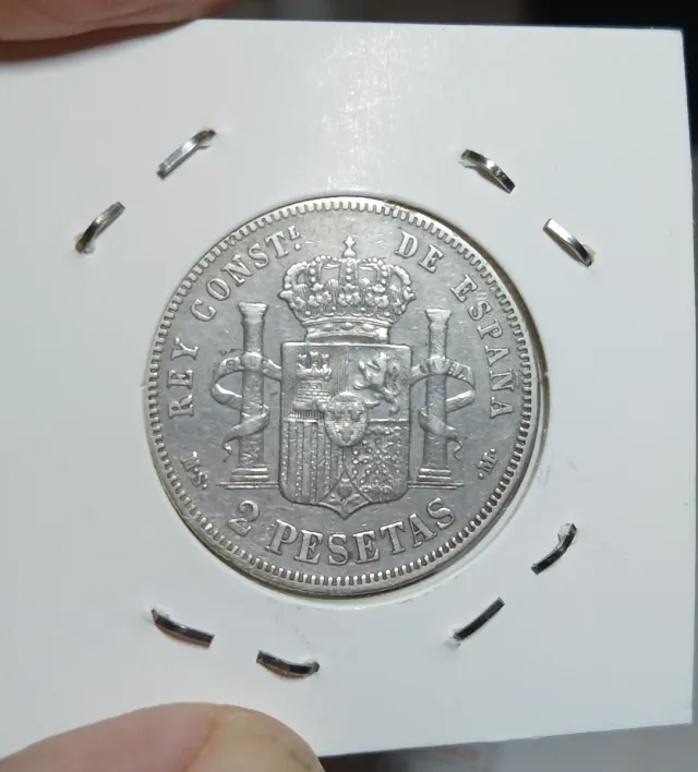 Detalles del productoMoneda de 2 pesetas de plata del año 1881.
