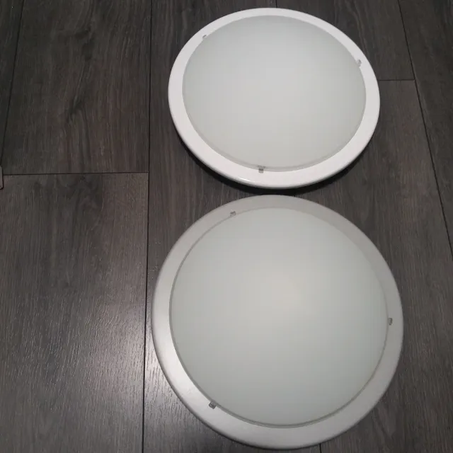 Detalles del productoSe venden dos plafones LED de diseño redondo. Uno es de color blanco y el otro gris claro.