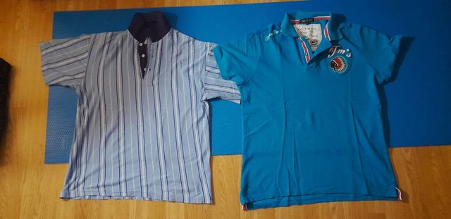 El de rayas es talla M. El azul XL, pero equivale a una L. Posibilidad de combinar con más ropa de mi perfil y hacer una rebaja.