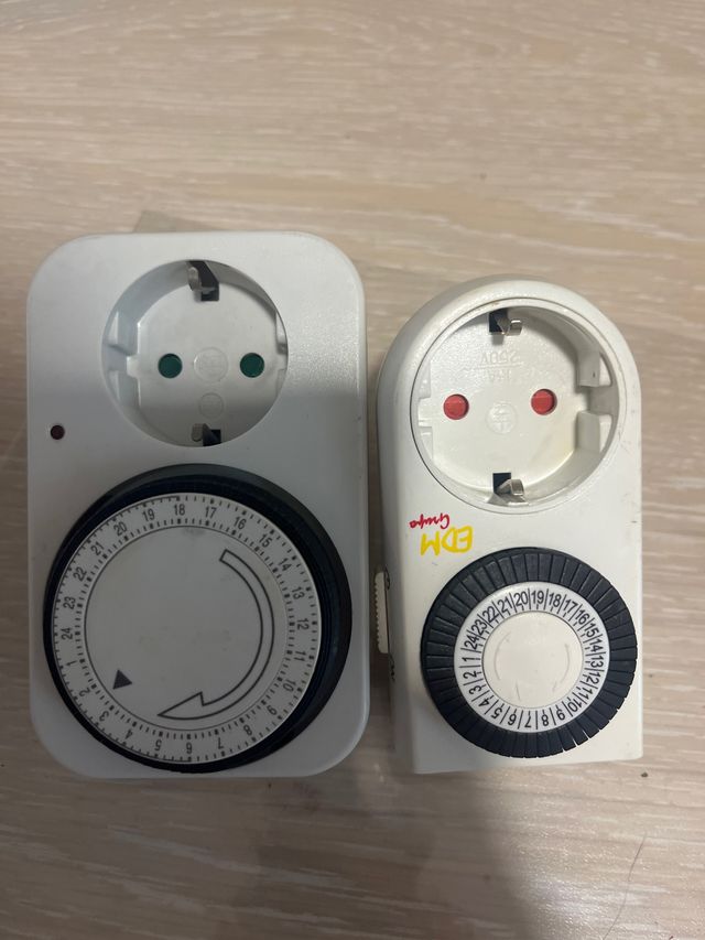 Detalles del productoSe venden dos programadores de enchufe para temporizar aparatos eléctricos. Son de la marca EDM.