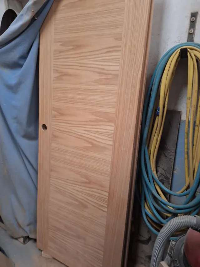Se venden dos puertas correderas de madera, ideales para dividir espacios. - Medidas: 72 cm de ancho x 2.03 m de alto. - Material: Madera.