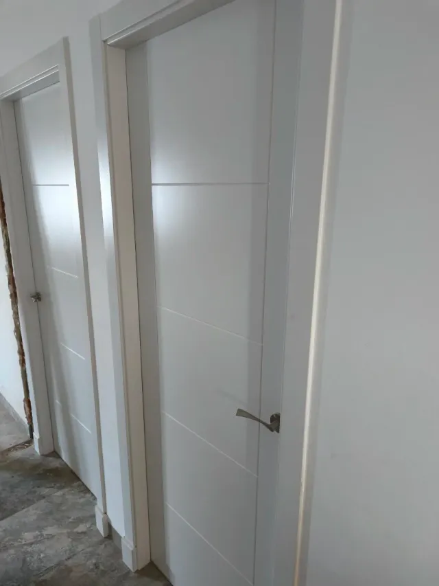 Detalles del productoSe venden dos puertas de paso blancas con un diseño moderno.