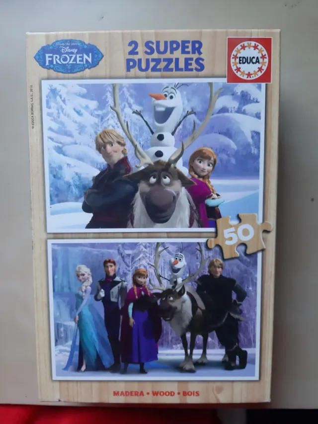 Detalles del productoPack de dos puzzles de la película Frozen de Disney. Incluye dos imágenes diferentes de los personajes. A partir de 5 años.