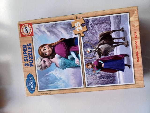 Set de dos puzzles de la película Frozen de Educa. - Cada puzzle tiene 25 piezas. - Ilustraciones de los personajes de Frozen. - Fabricados en madera.