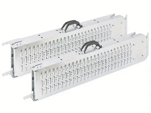 Se venden dos rampas plegables. - Diseño plegable para fácil almacenamiento y transporte. - Cada rampa cuenta con asas para un mejor agarre.