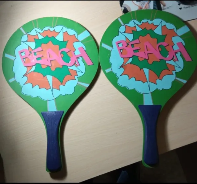 Detalles del productoSet de dos raquetas de playa con un diseño llamativo.