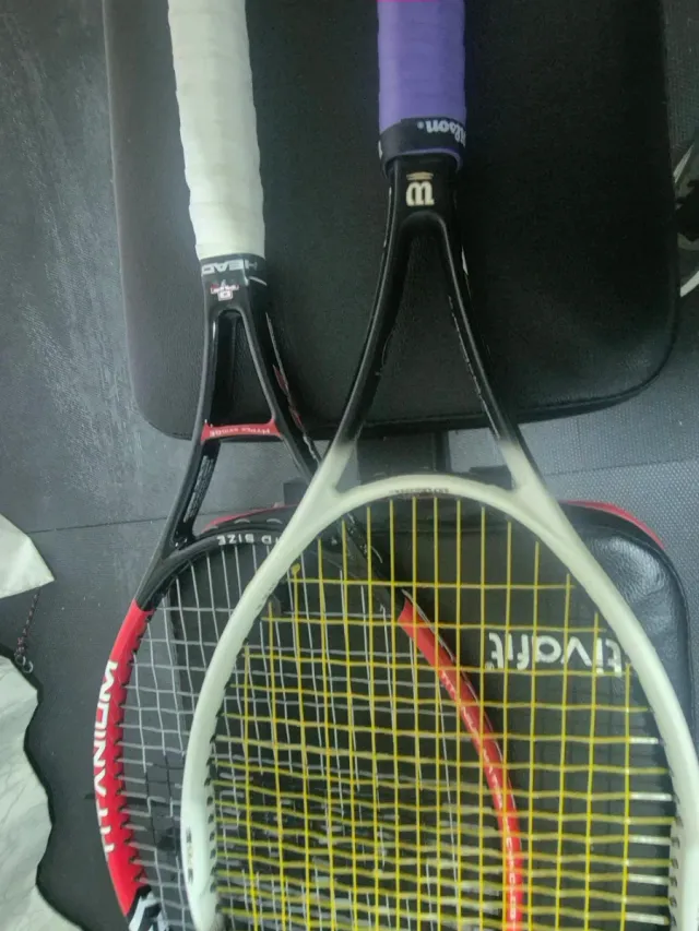 Detalles del productoDos raquetas de tenis, una marca Wilson y otra Head.