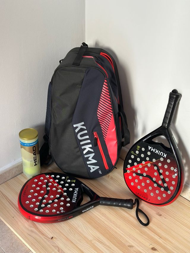 - Dos raquetas de pádel Kuikma con diseño en rojo y negro usadas únicamente 5 veces.