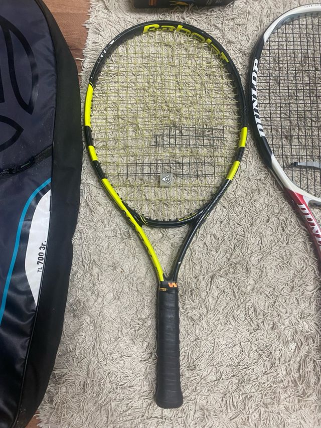 Detalles del productoSe venden dos raquetas de tenis, una marca Dunlop y otra Babolat, junto con un macuto.