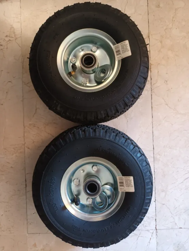 Detalles del productoJuego de dos ruedas de repuesto para carretilla, nuevas y sin usar.