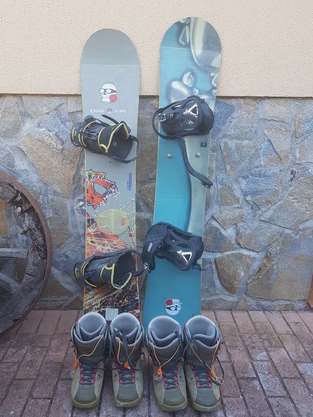 Detalles del productoDos tablas de snowboard usadas con sus fijaciones y botas a juego. Ideales para principiantes o para uso ocasional. Están en buen estado, listas para disfrutar de la nieve.