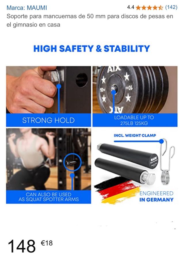 Almacenamiento directo No es necesario llevar pesas por todo el gimnasio: este soporte se atornilla directamente al rack
