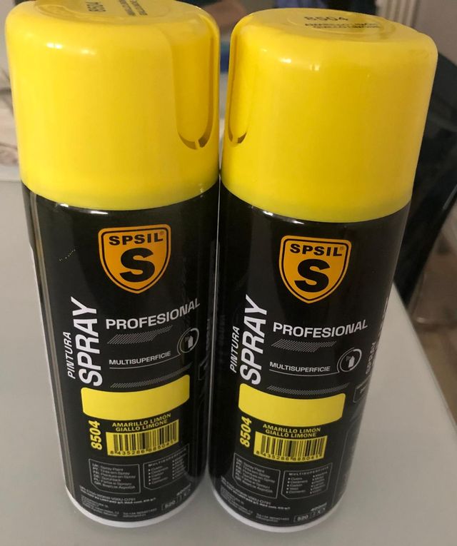 Dos botes de pintura en spray amarillo limón de la marca SPSIL. Usados pero queda bastante cantidad.