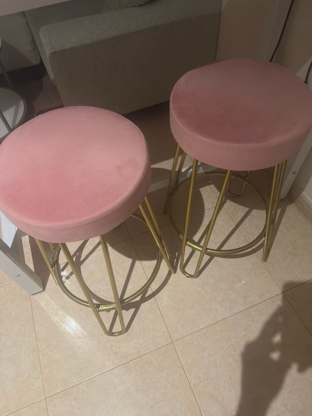 2 Taburetes terciopelo rosa-dorado