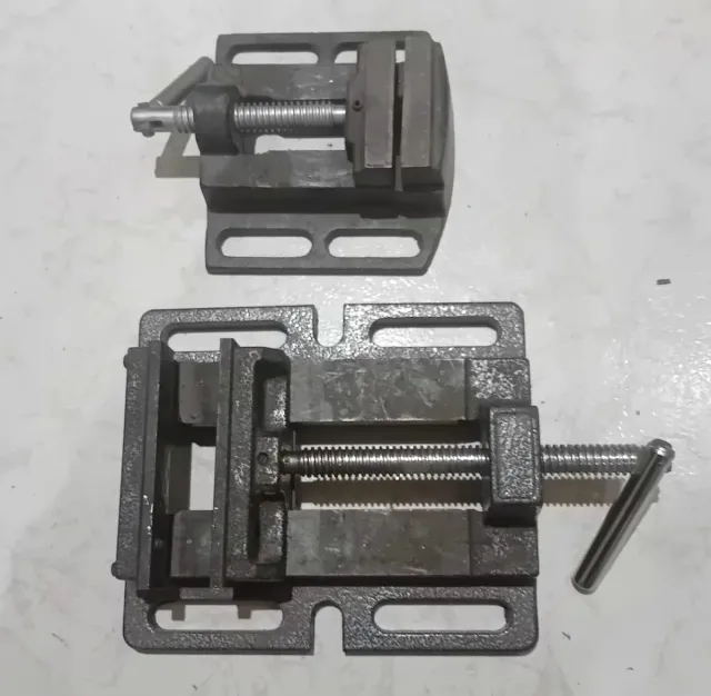 Detalles del productoSe venden dos tornillos de banco de metal, ideales para sujetar piezas. Uno es más pequeño que el otro.