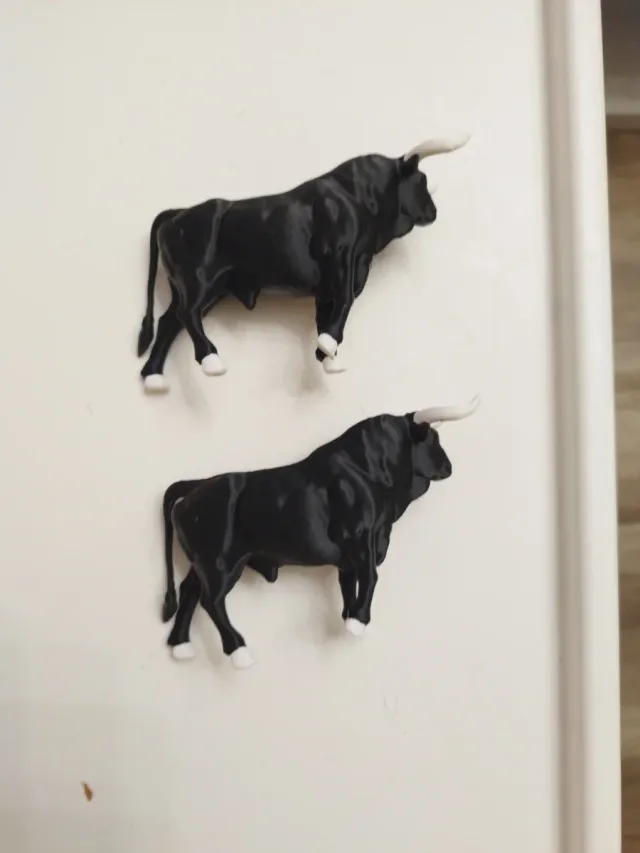 Conjunto de dos figuras decorativas de toros negros. - Diseño detallado. - Color negro brillante. - Pequeños detalles blancos en las pezuñas y cuernos.