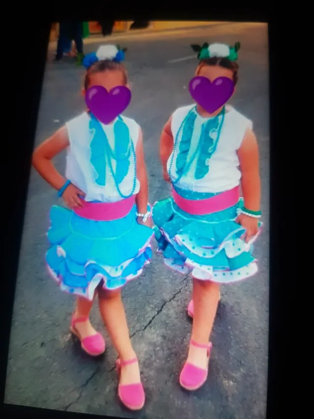 2 Trajes Flamenca Niña Azul/Rosa Talla Única