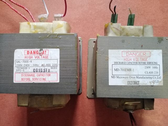 Detalles del productoSe venden dos transformadores de microondas, uno modelo GAL-700E-4 y otro MD-701EMR-1.